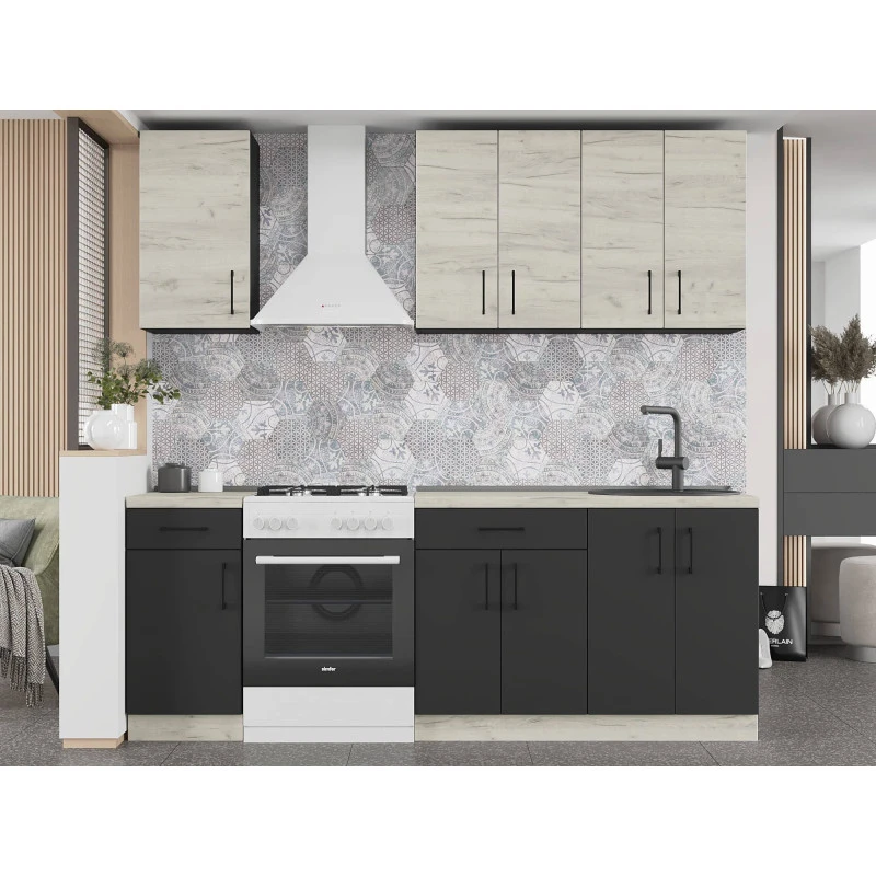 Кухня модульна Еверест Оптіма набір №4 Дуб крафт білий+Антрацит 2,2 м (без стільниці) (DTM-5704)
