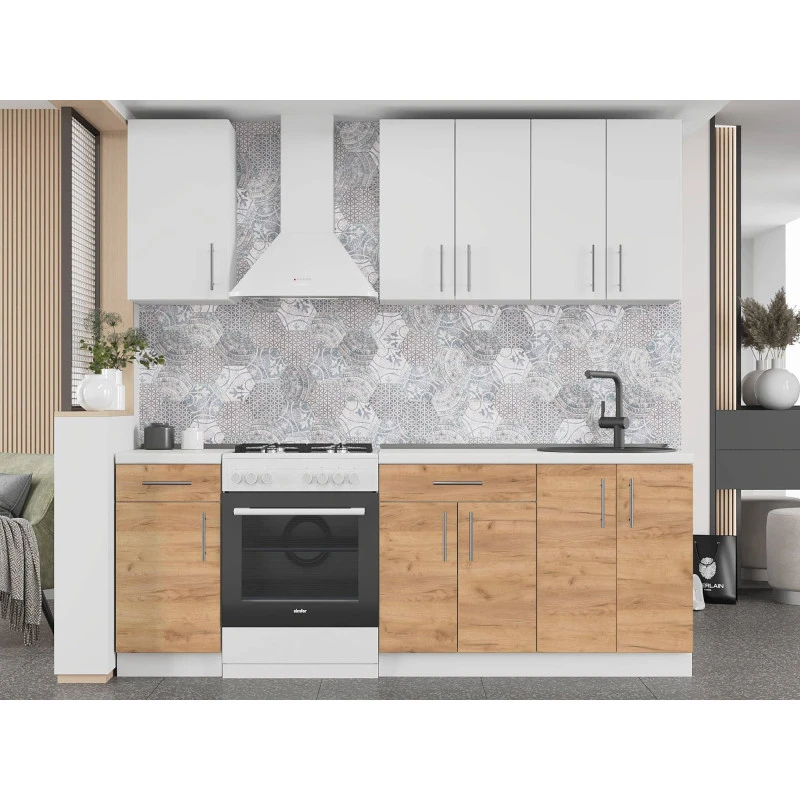 Кухня модульна Еверест Оптіма набір №4 Німфея альба+Дуб крафт золотий 2,2 м (без стільниці) (DTM-570