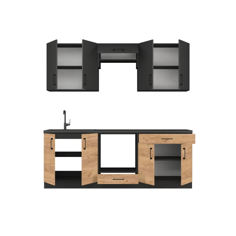 Відкрийте для себе новий рівень комфорту з модульною кухнею Еверест Оптіма, яка поєднує в собі сучасний дизайн та бездоганну практичність. Її стильне поєднання антрацитового кольору з дубом крафт золотим створює вишукану атмосферу, що надихає на кулінарні шедеври. Завдяки продуманій конфігурації, ви з легкістю організуєте простір, що дозволить вам насолоджуватися кожним моментом на кухні.