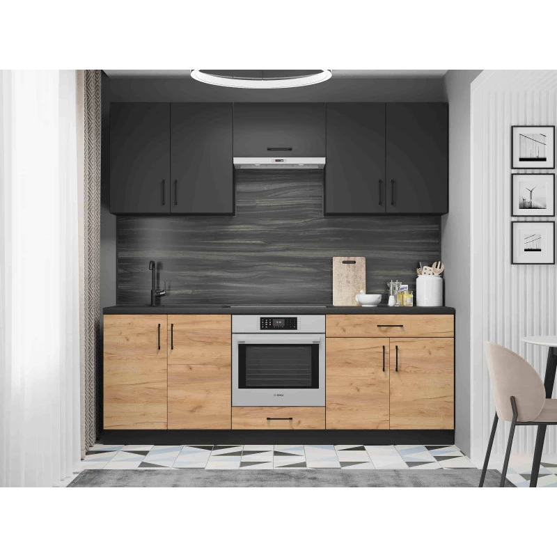 Кухня модульна Еверест Оптіма набір №8 Антрацит+Дуб крафт золотий 2,2 м (без стільниці) (DTM-5723)