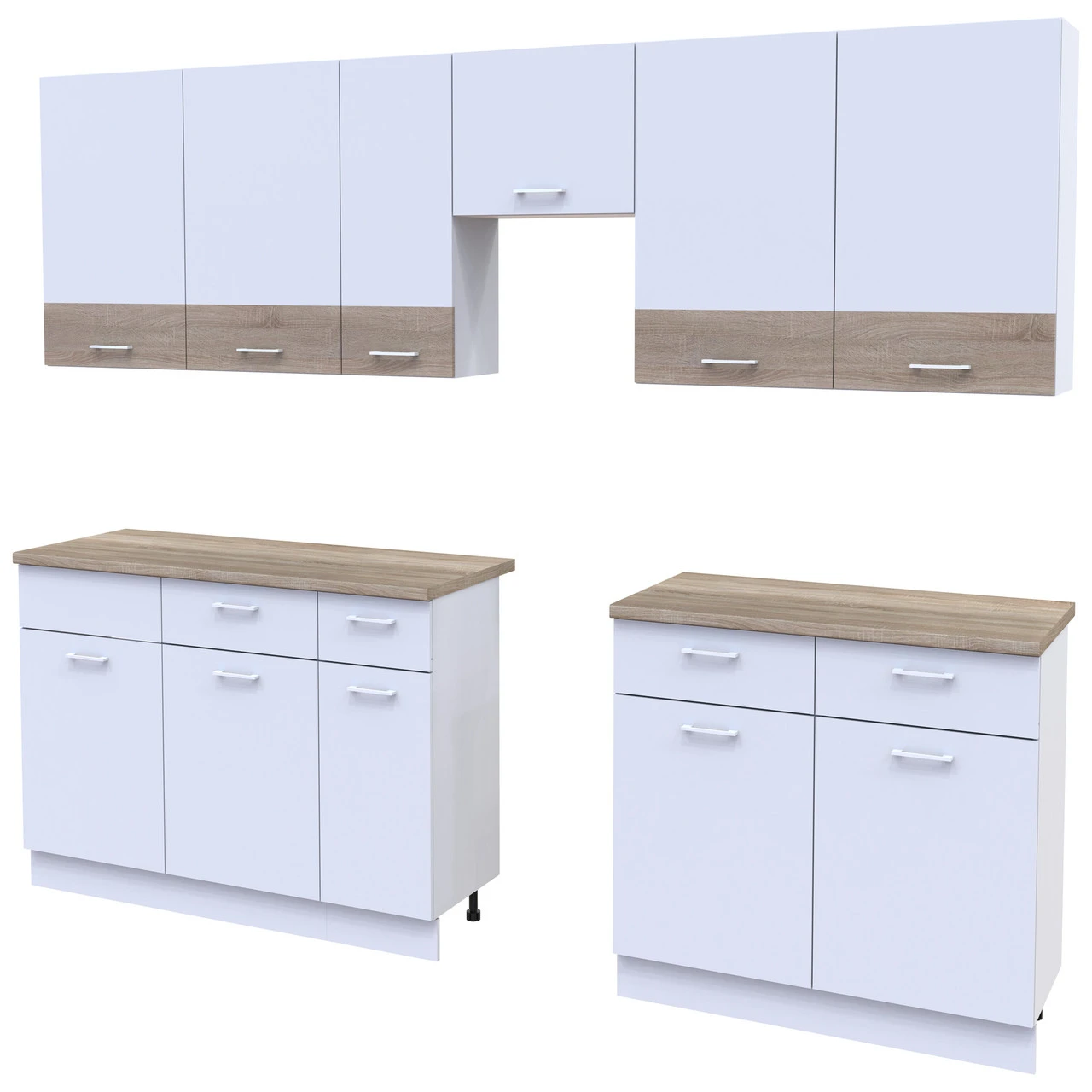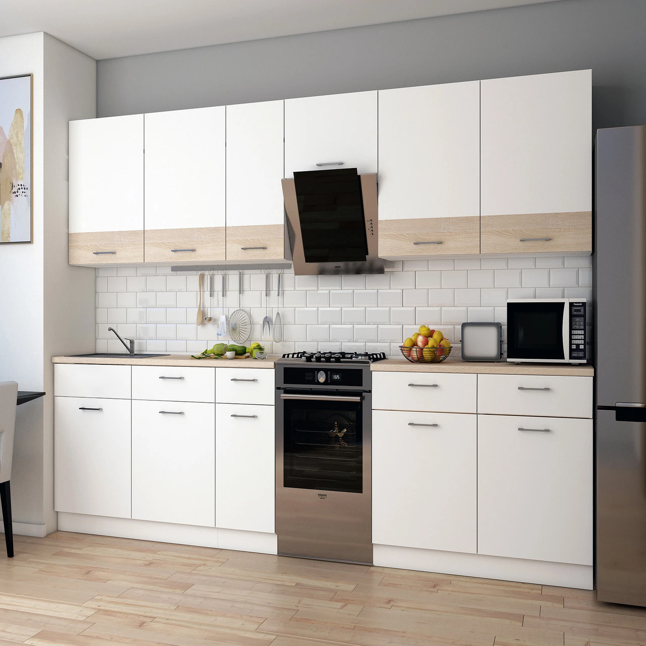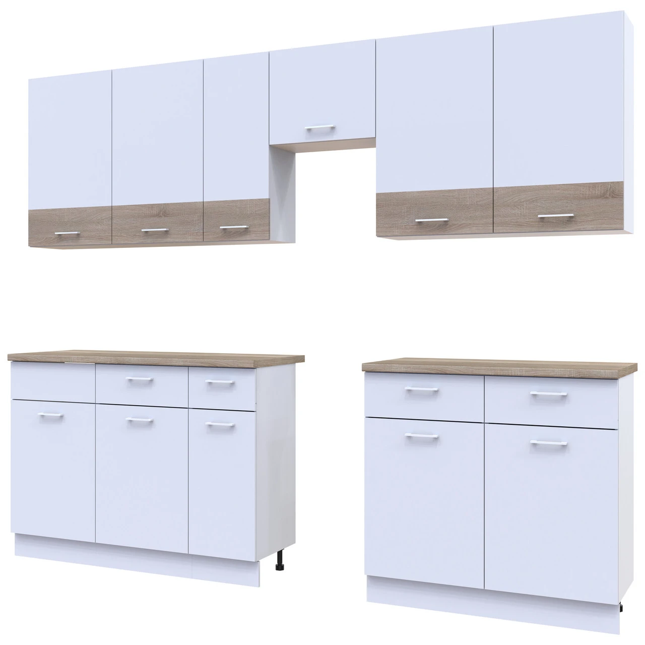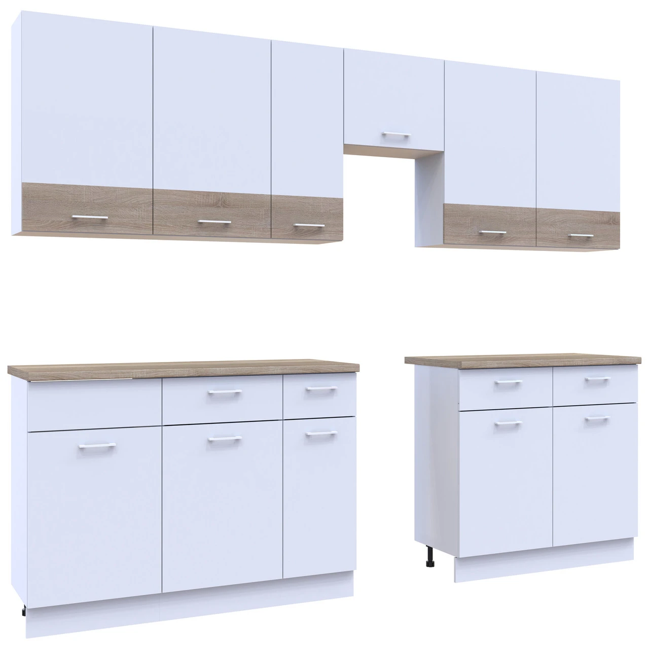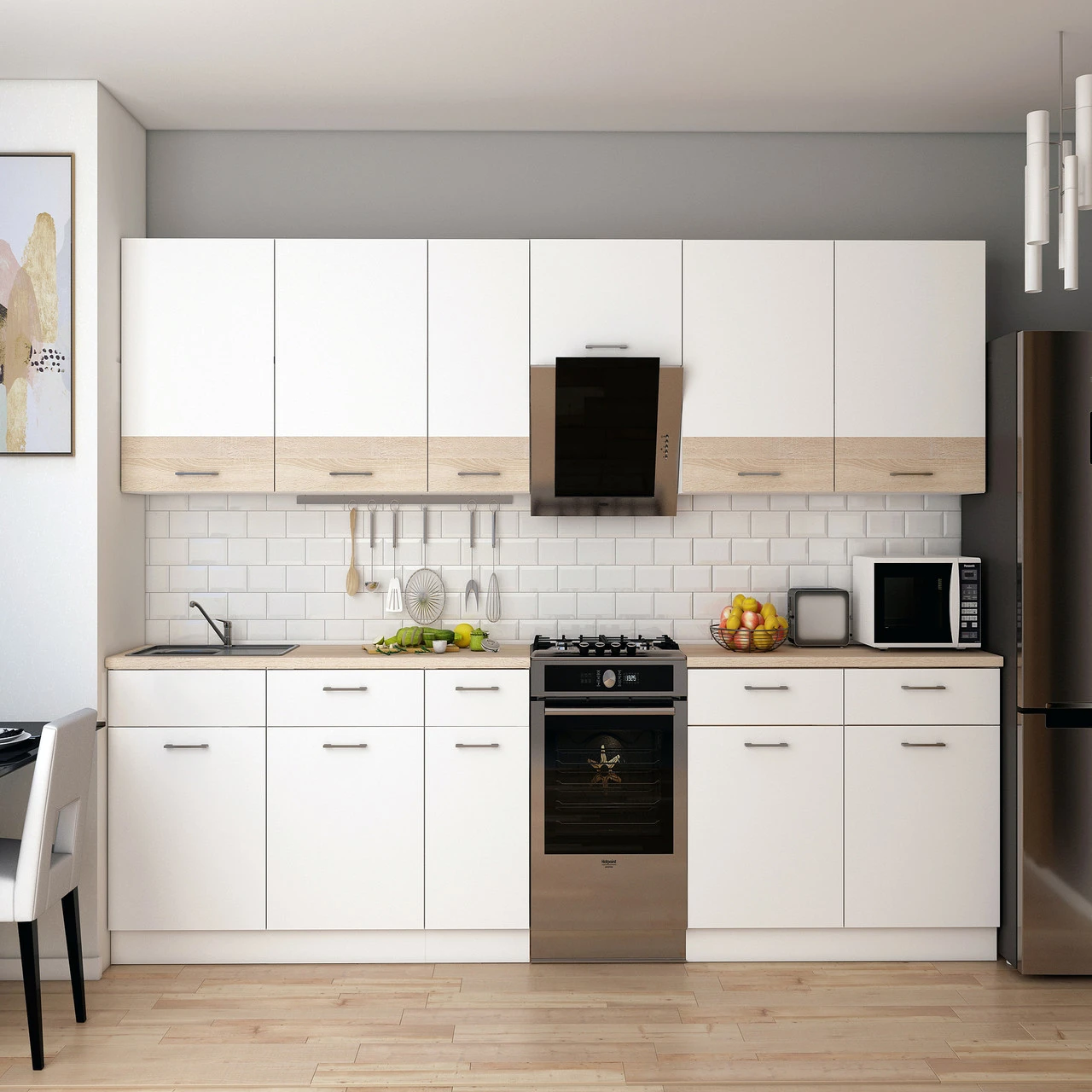 Ваша кухня заслуговує на найкраще! Модульна кухня Лея в кольорах білий та дуб сонома — це ідеальне поєднання елегантності та практичності. Завдяки сучасному дизайну та продуманій конструкції, ця кухня стане справжньою родзинкою вашого інтер'єру. Вона створена для тих, хто цінує комфорт і стиль в кожному елементі свого дому.