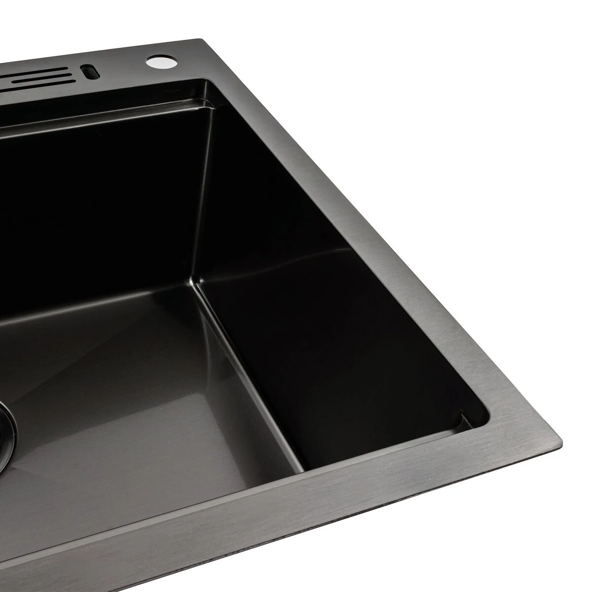 Оновіть свою кухню з Кухонною мийкою чорною PVD 60х50 Platinum Handmade з підставкою для ножів, яка не тільки приваблює своїм стильним дизайном, але й забезпечує максимальну функціональність і зручність в щоденному використанні!