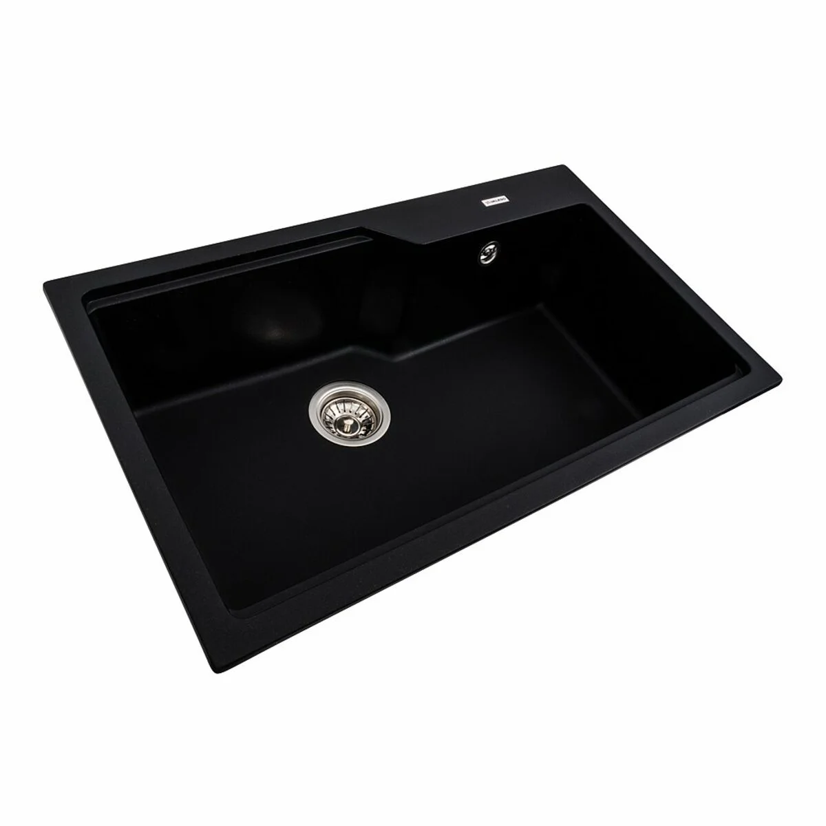 Гранітна мийка для кухні 7545 NIKA Чорний металік українського бренду VALESO - це стильна, врізна, прямокутна мийка, яка своїм виглядом чудово доповнить дизайн вашої кухні. Мийка на 80% складається з кварцу та на 20% з надзвичайно твердої акрилової смоли, завдяки чому невибаглива у догляді, а також має великий запас міцності.