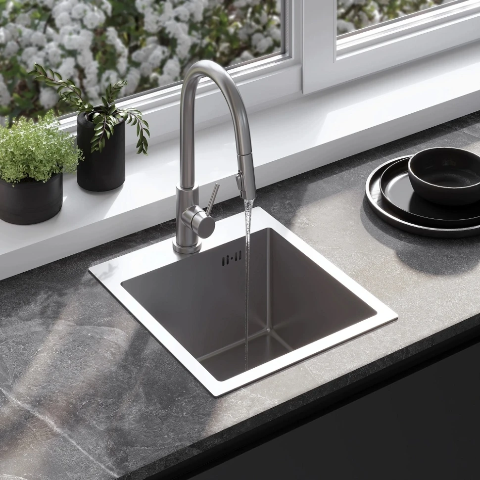 кухонна мийка Rea Leo 40x45 з сифоном, brush nickel (ZLE-06000)