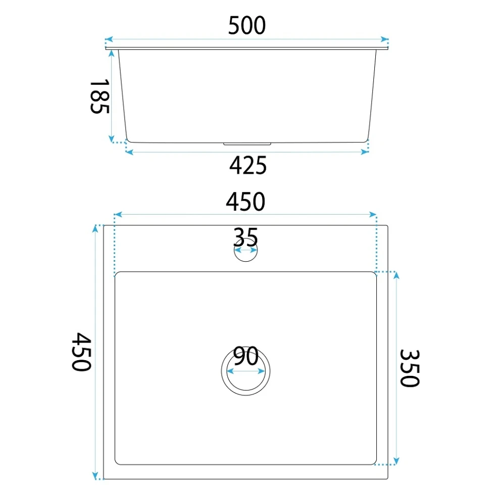 кухонна мийка Rea Leo 50x45 із сифоном, black (ZLE-06005)