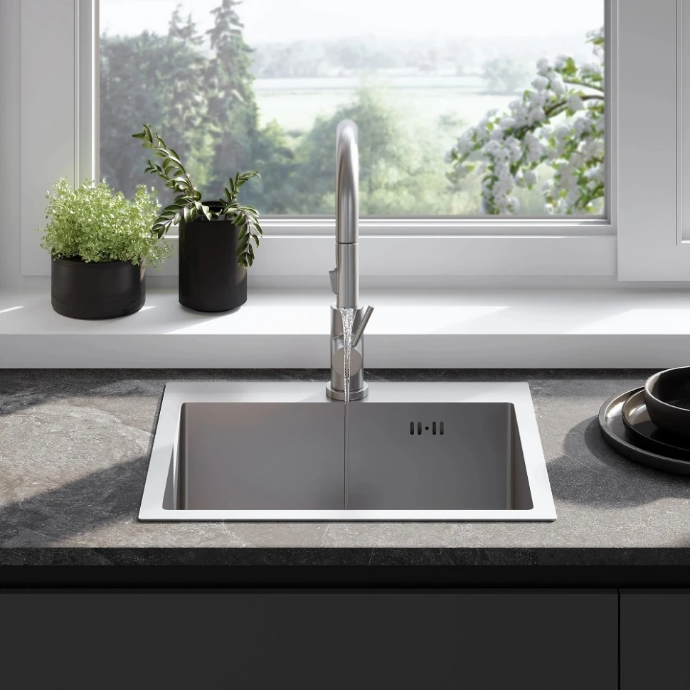кухонна мийка Rea Leo 50x45 з сифоном, brush nickel (ZLE-06003)