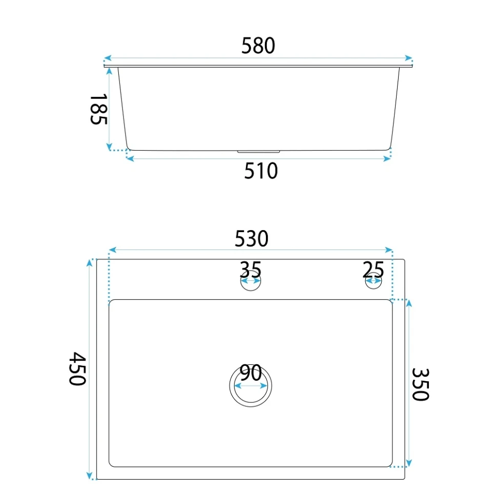 кухонна мийка Rea Liam 58x45 із сифоном, black (ZLE-06008)