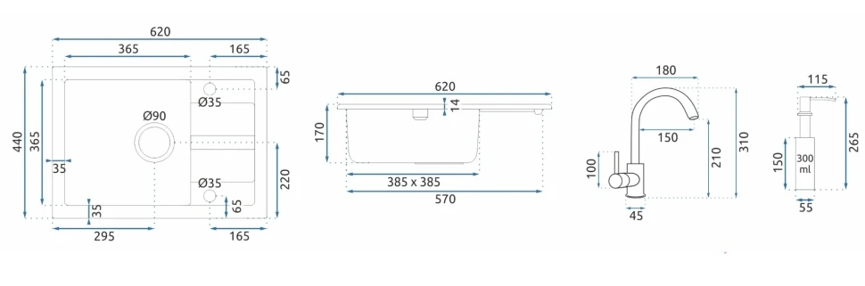 кухонна мийка Rea Nils 44x62 grey (ZLE-00101)