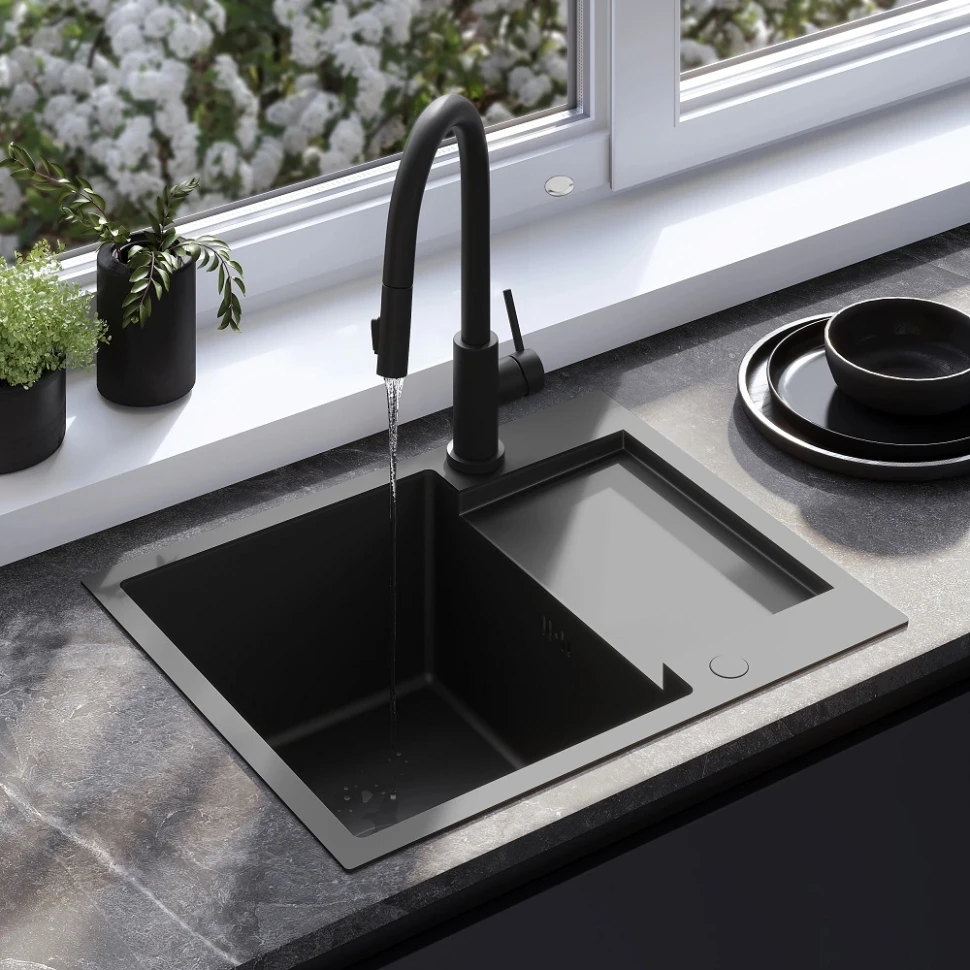 кухонна мийка Rea Paul 60x48 із сифоном, black (ZLE-06011)