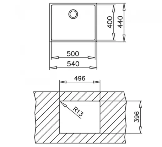 Прямокутне миття для кухні під стільницю Teka BE LINEA RS15 50.40 (115000005) нержавіюча сталь з однією чашею, без крила.