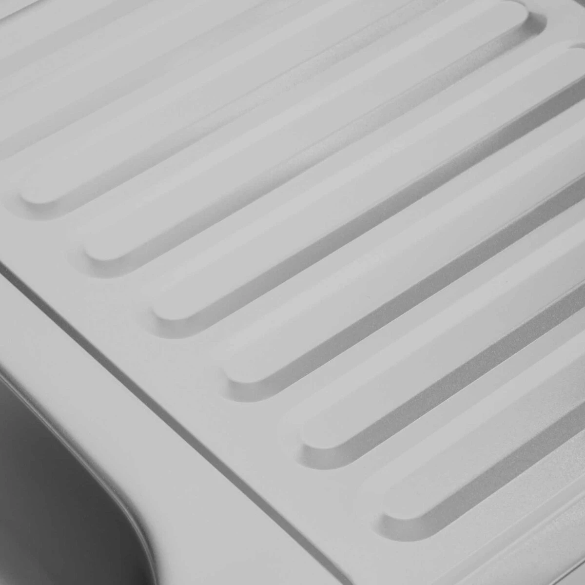 Нержавіюча сталь SUS 201 добре поєднується з фактурою різних матеріалів та кольорами кухонного інтер’єру. Мийка може мати ліве та праве крило сушки (L або R), з відповідним отвором для змішувача.