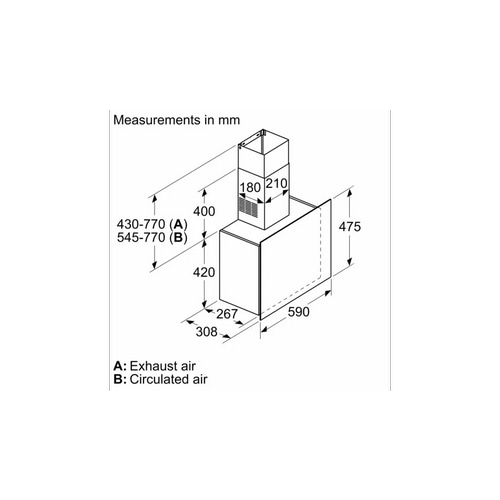 * Розміри (відведення повітря) (ВхШхГ): 850-1190 x 590 x 308 мм