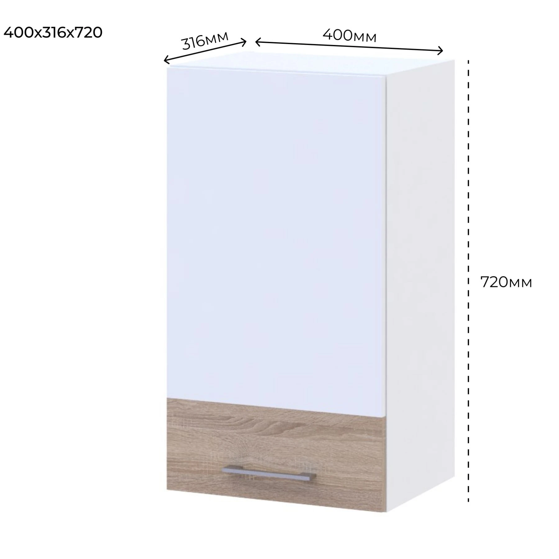 Кухонний модуль верхній Doros Лея В72_Ш40 40х31,6х72 см Білий/Дуб сонома (DRS-011362)