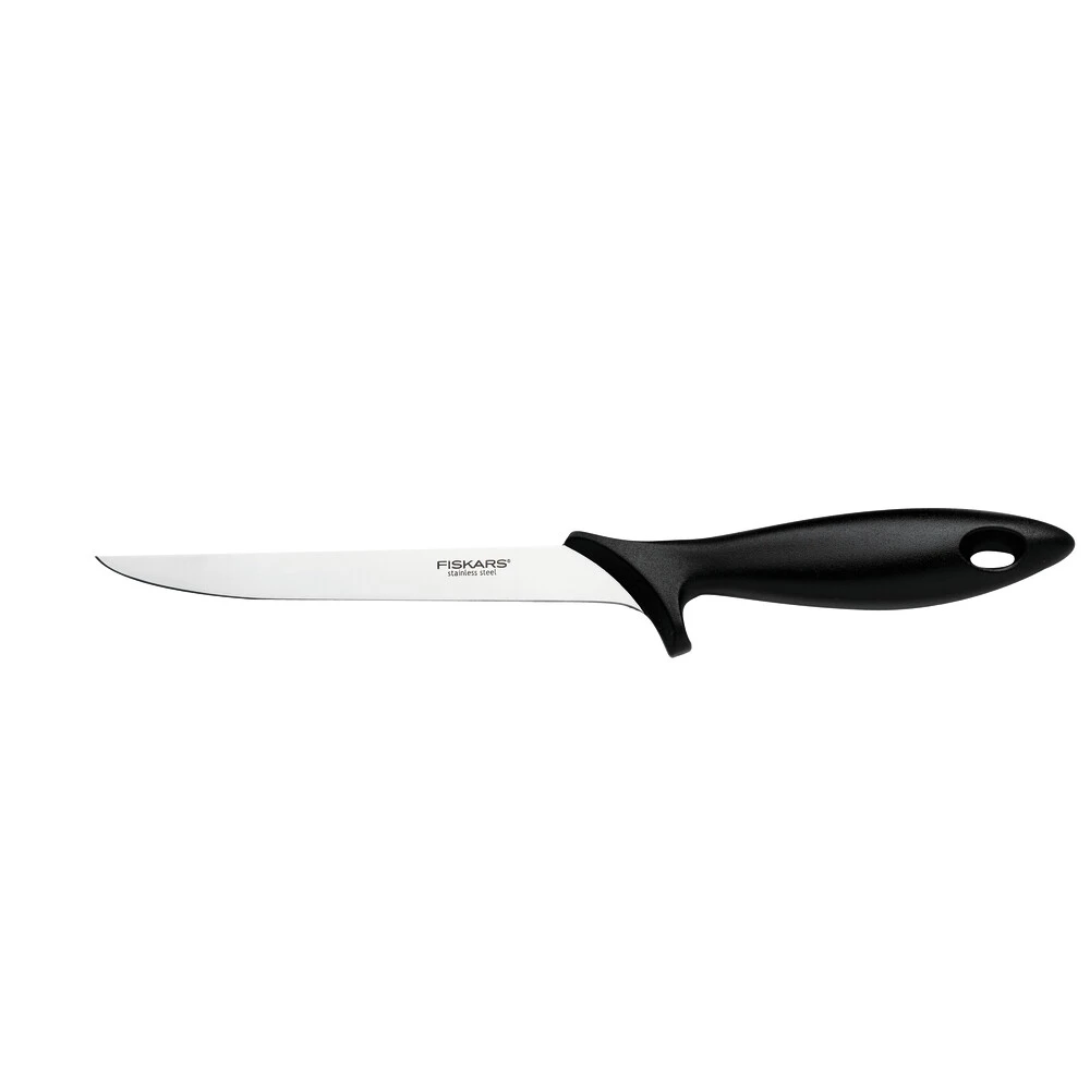 Кухонний ніж філейний Fiskars Essential, з гнучким лезом, 17.6см, нержавіюча сталь, пластик, чорний