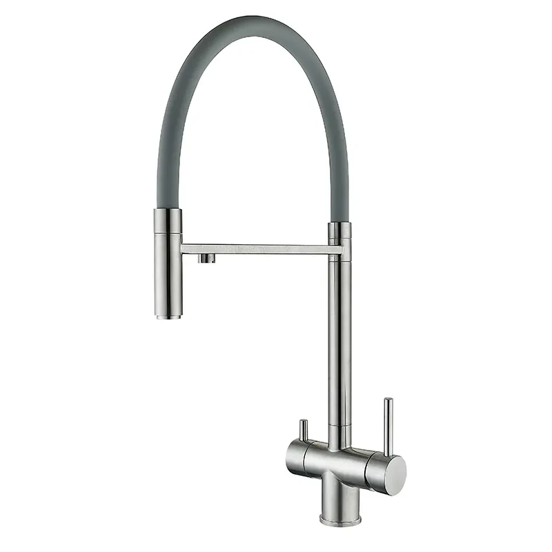 Кухонний змішувач на дві води з гнучким виливом Zerix KIT-021 Refl.Gray (нерж. сталь) (ZX4861)