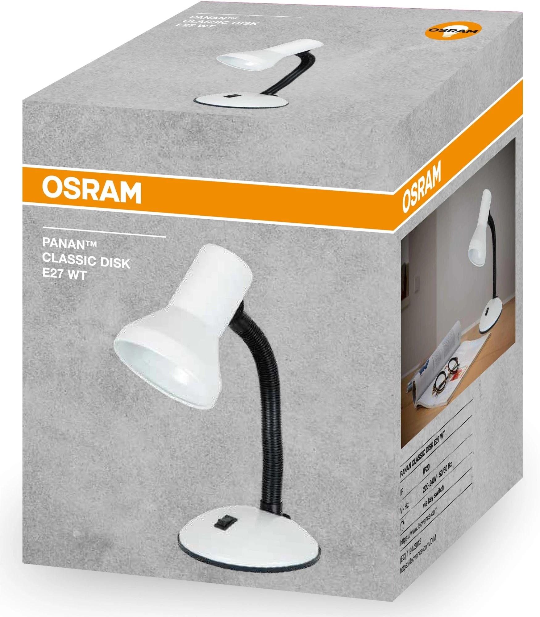 Лампа настільна OSRAM Panan CLASSIC DISK E27, білий