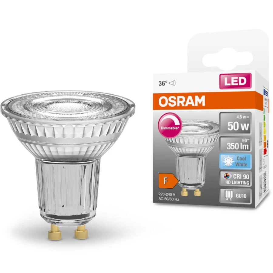 Лампа OSRAM LED GU10 4.5Вт 4000К 350Лм PAR1650 димується STAR