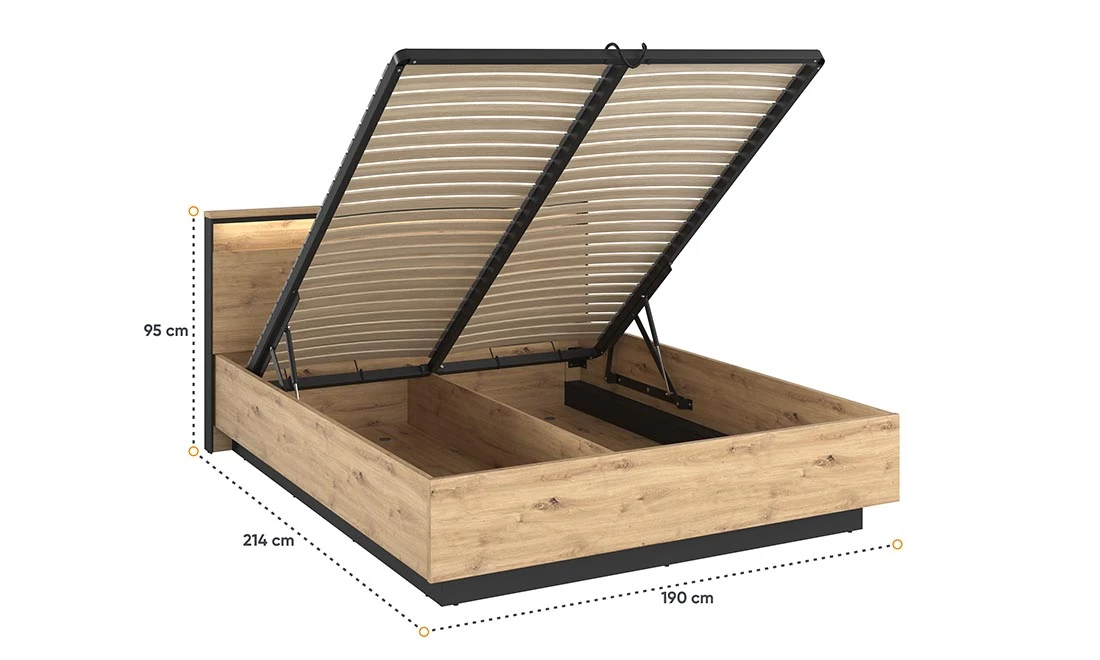 Ліжко 1,8 Квант з підйомним механізмом дуб артизан/чорний з підсвіткою