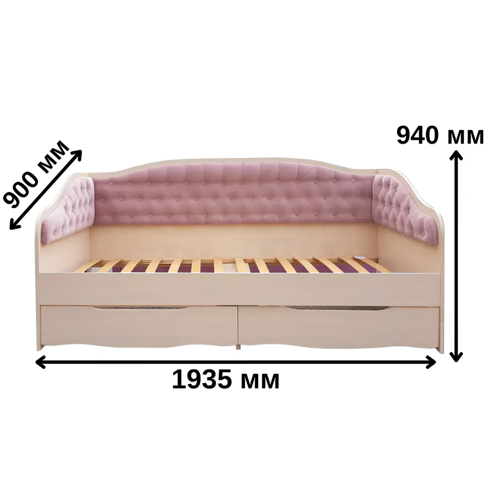 Ліжко дитяче односпальне LION Л-9 з м'якою спинкою і висувними шухлядами 190x90 см Бетон Style/Лілі-