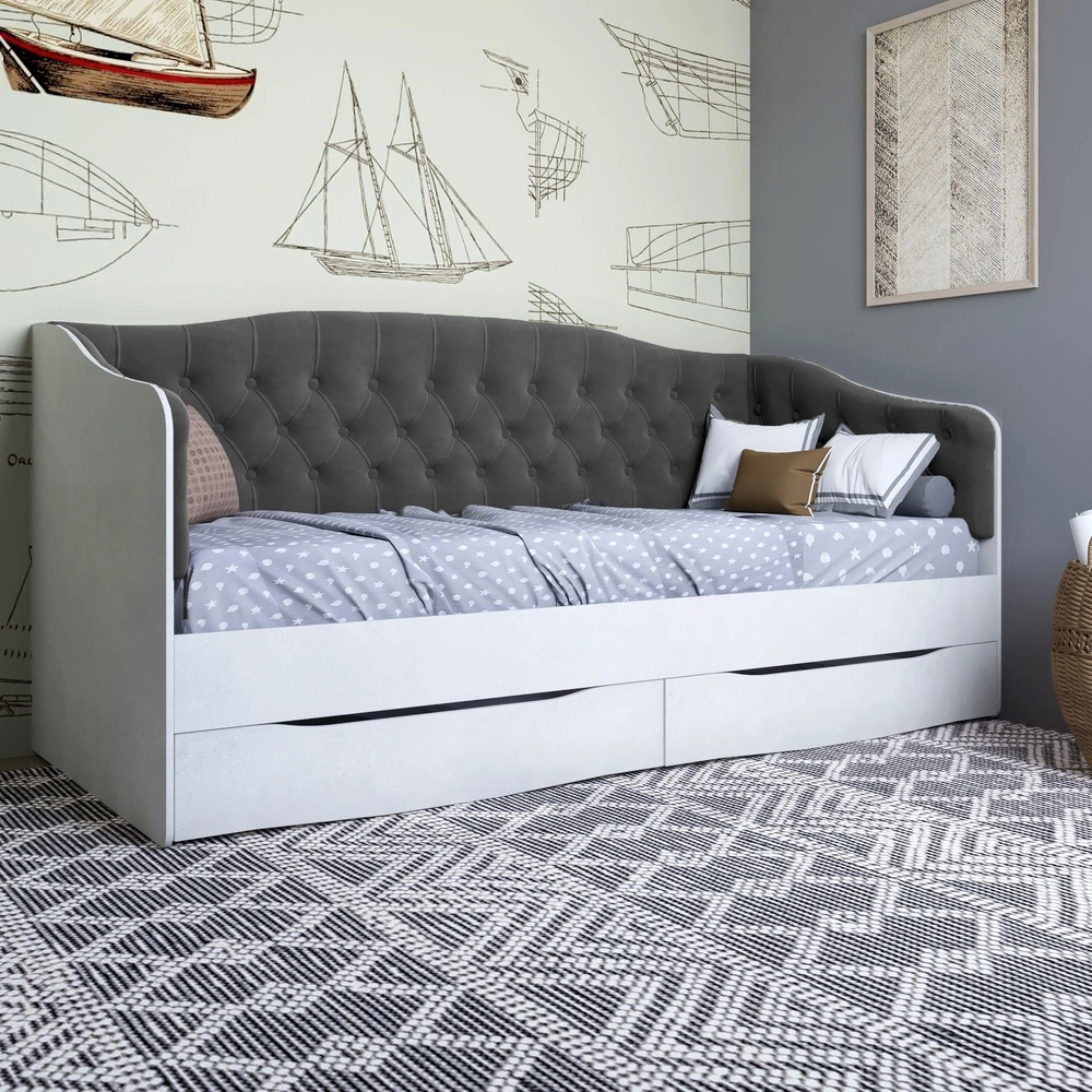 Ліжко дитяче односпальне LION Л-9 з м'якою спинкою і висувними шухлядами 190x90 см Бетон Style/Лілі-