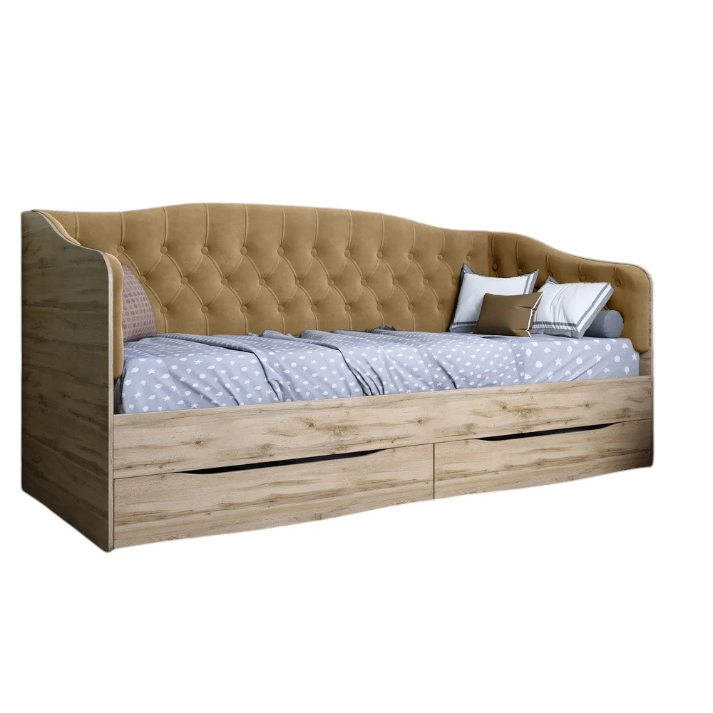 Ліжко дитяче односпальне LION Л-9 з м'якою спинкою і висувними шухлядами 190x90 см Дуб Аппалачі/Лілі