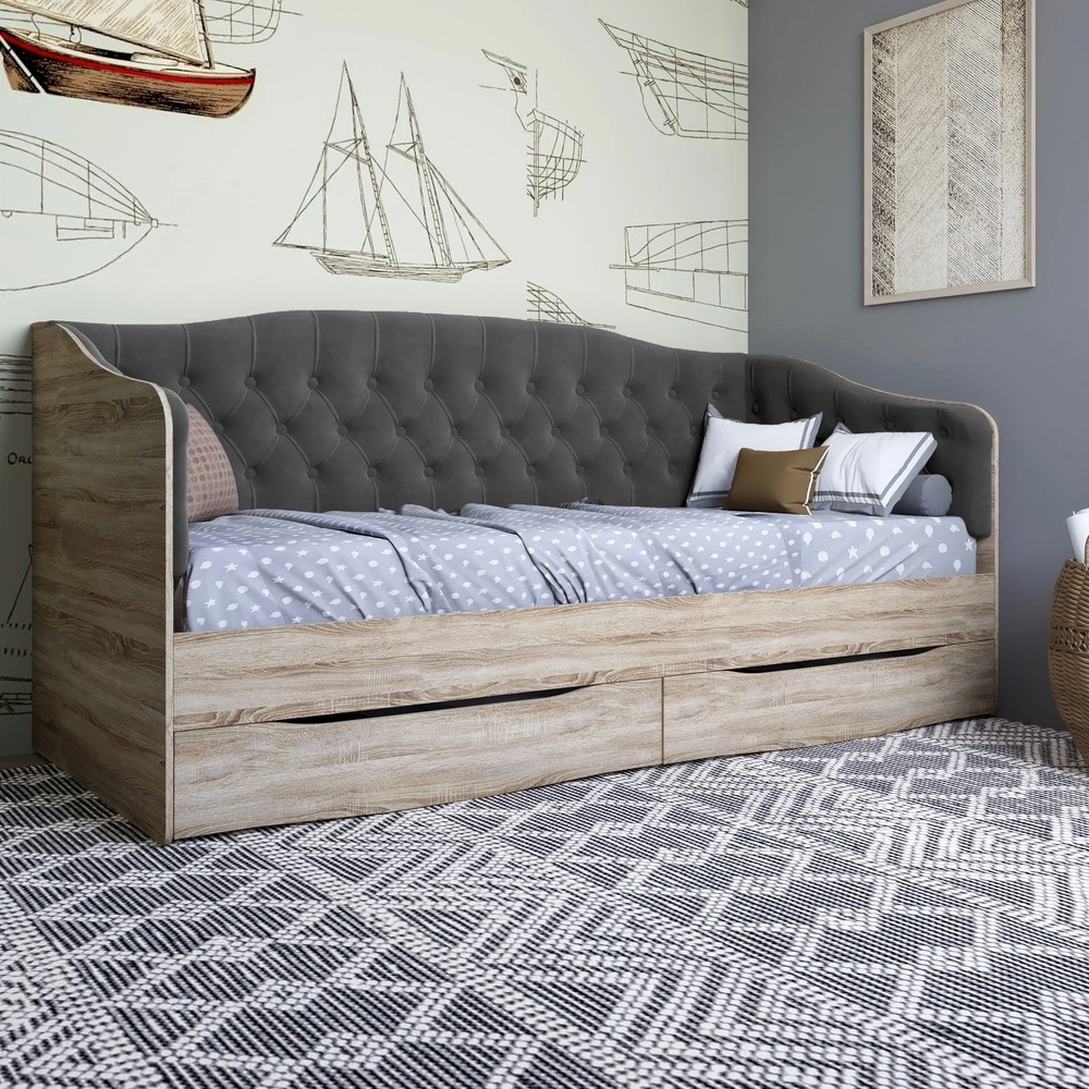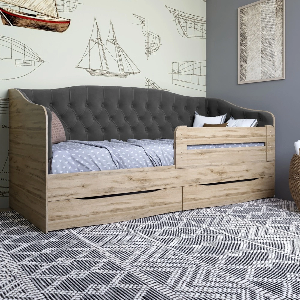 Ліжко дитяче односпальне LION Л-9 з м'якою спинкою і висувними шухлядами 190x90 см Дуб сонома трюфел
