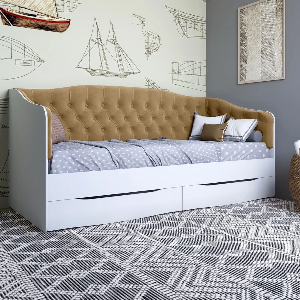Мягкая спинка кровати не только добавляет эстетики, но и обеспечивает безопасность и комфорт во время чтения или отдыха. Ваш малыш сможет наслаждаться временем, проведенным в постели, без всяких неудобств. А выдвижные ящики под кроватью станут идеальным решением для хранения игрушек, одежды или постельного белья, что поможет сохранить порядок в комнате.