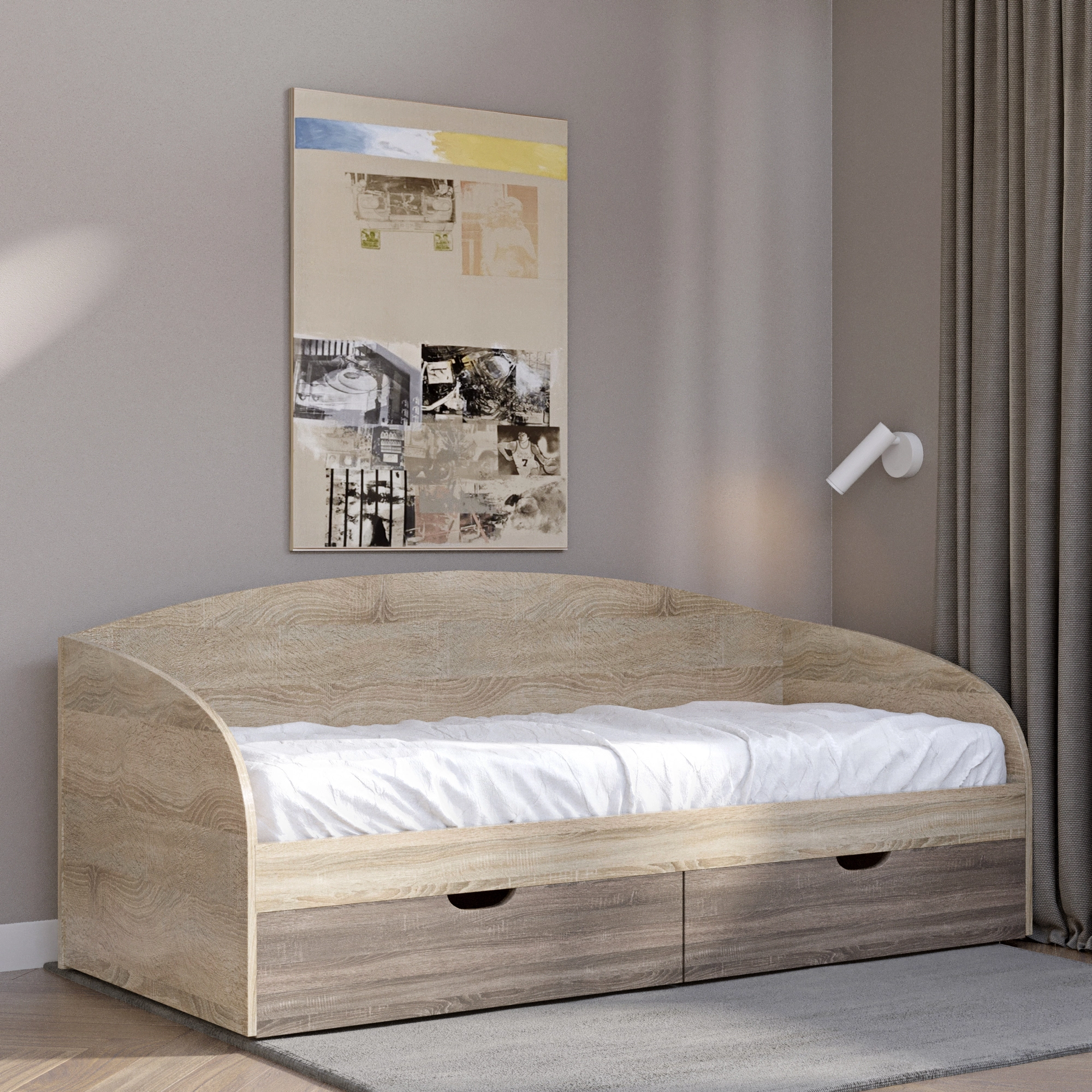 Відкрийте для себе ідеальне поєднання стилю та комфорту з односпальним ліжком Еверест Комфорт. Це ліжко стане справжнім акцентом у вашій спальні, завдяки сучасному дизайну та елегантному кольоровому рішенню. Використовуючи натуральні відтінки, ліжко легко впишеться в будь-який інтер'єр, створюючи затишну атмосферу для відпочинку.