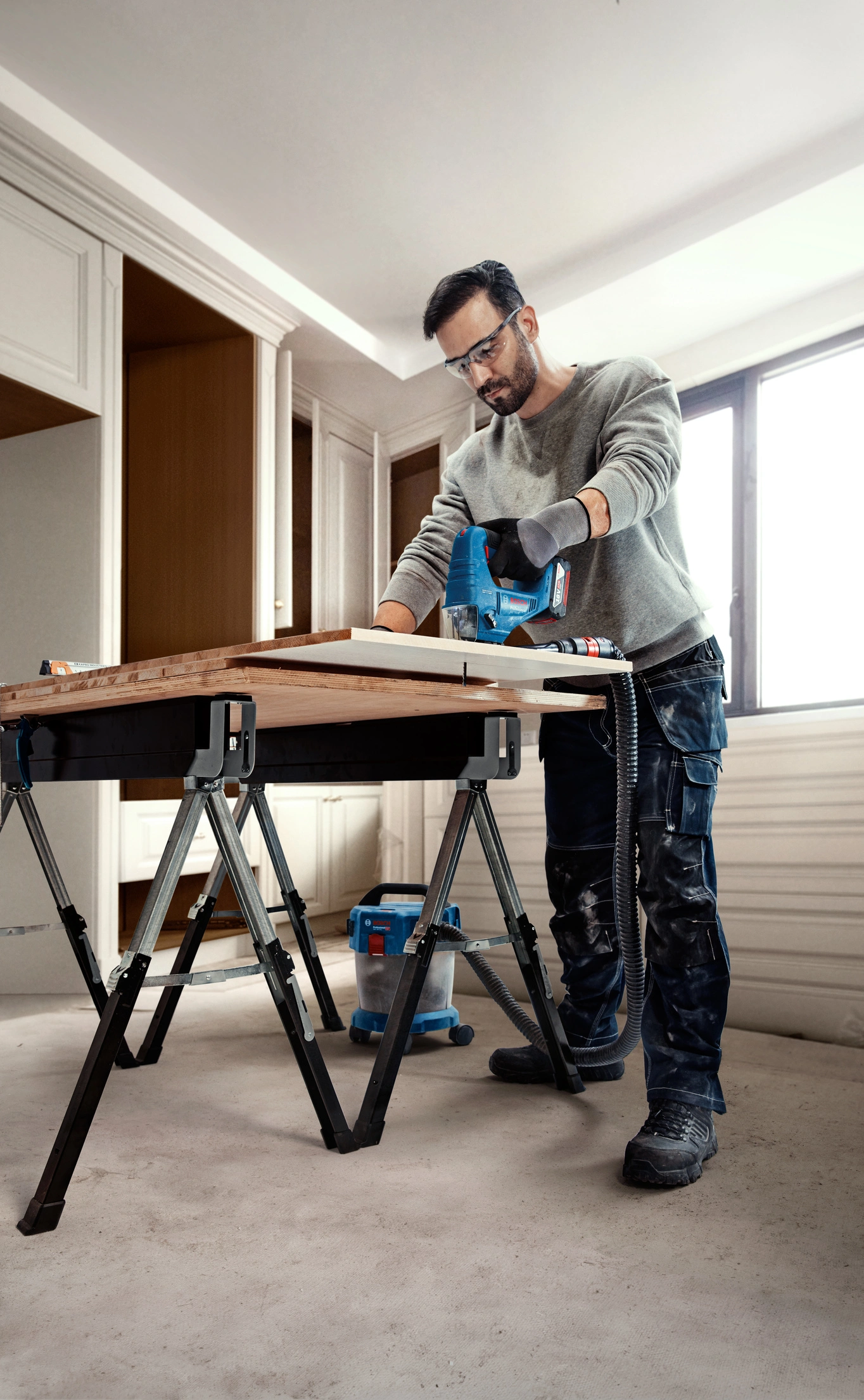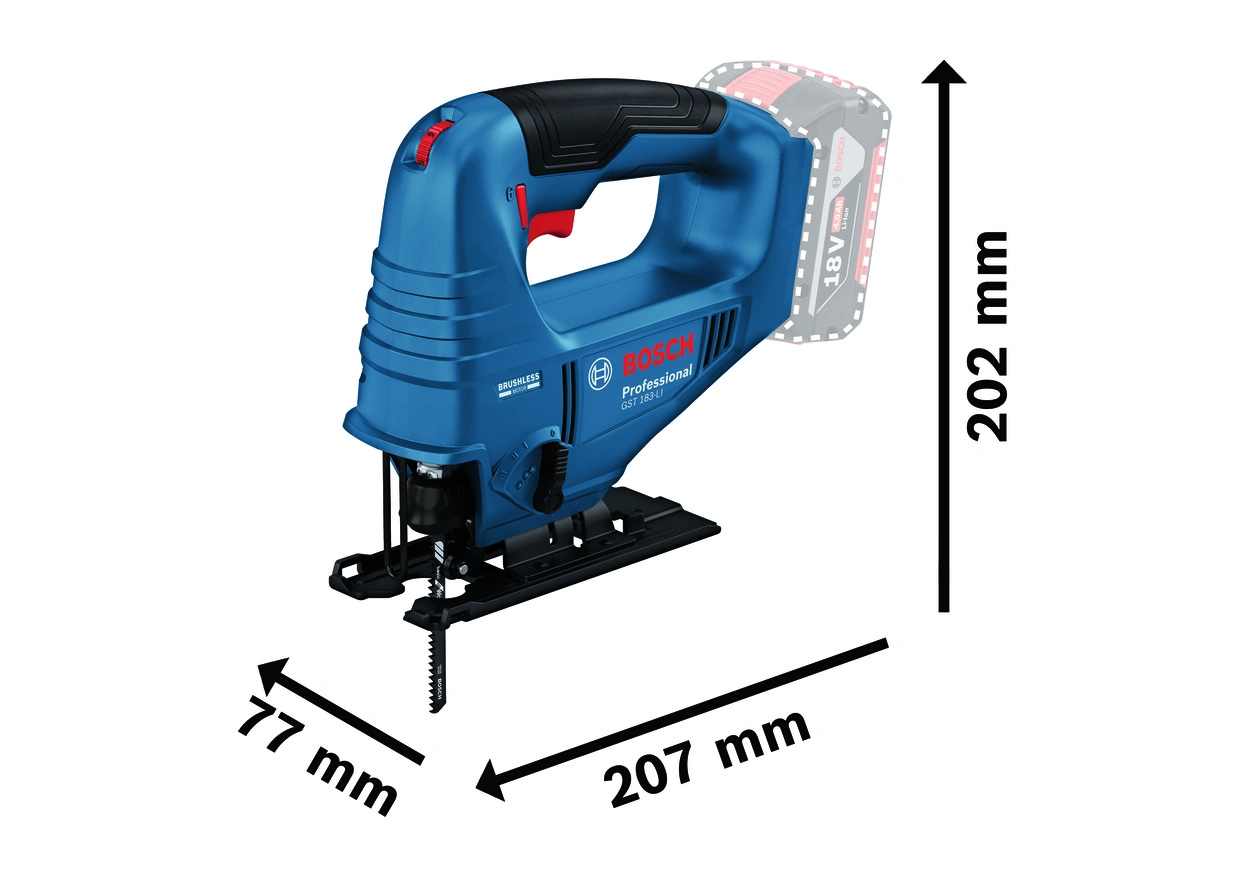 Якщо ви шукаєте потужний лобзик, яким легко керувати, який без зусиль ріже різні матеріали, незалежно від кута або площі, і який легко поміститься у вашому ящику з інструментами, то ви знайшли те, що шукали: З нашим акумуляторним лобзиком GST 183-LI Professional ви можете вільно пересуватися завдяки компактній конструкції.