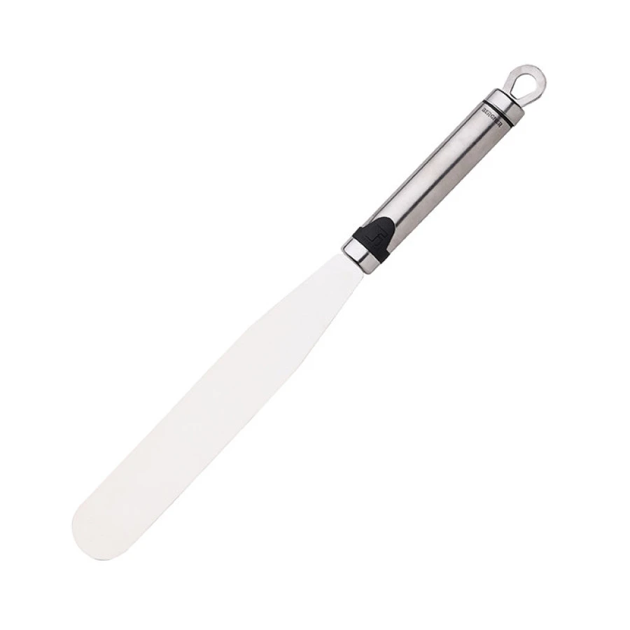 Зручна ергономічна ручка правильно лягає в долоню та забезпечує контроль у процесі роботи, не залишаючи напруги навіть під час довгих кулінарних сесій. Вона не ковзає та не залишає слідів, тож ви повністю сфокусовані на творчості, а не на технічних нюансах. Лопатка створює плавні рухи та дозволяє створювати рівні шари крему або прикрашати десерти з філігранною точністю.