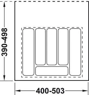 Лоток для столових приборів, матеріал: пластмаса, колір: антрацит, товщина 3 мм, номінальна довжина 500 мм, висота 50 мм, для ширини ящика 500–550 мм.