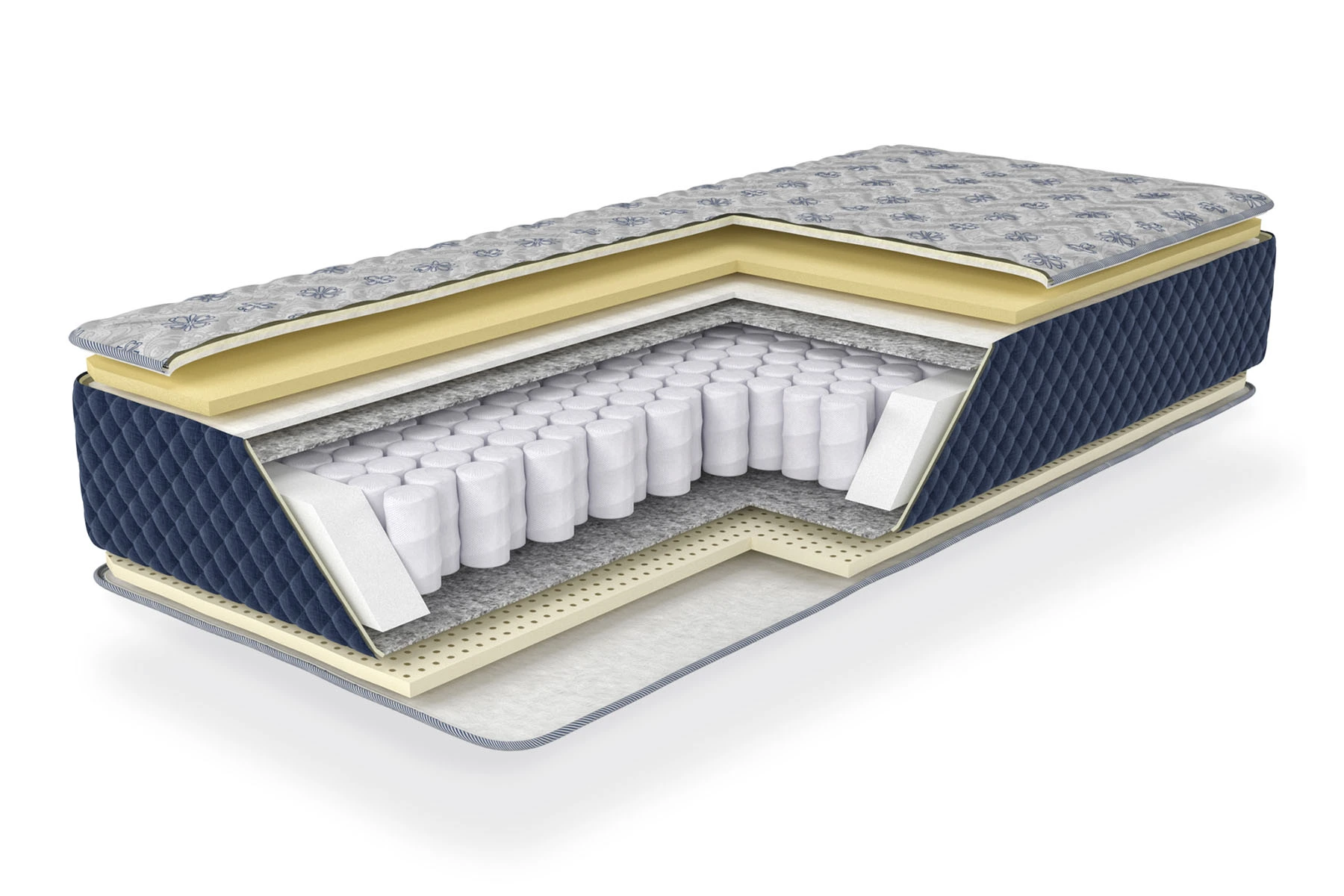 Поєднання елітних матеріалів, таких як натуральний латекс та Memory Foam, забезпечує максимальний рівень комфорту. Латекс, відомий своєю еластичністю та довговічністю, дарує відчуття м'якості та підтримки, а піна «меморі» з ефектом пам'яті адаптується до форми тіла, створюючи відчуття невагомості. Термоповсть захищає м'які шари від тиску пружин, продовжуючи термін служби матраца.