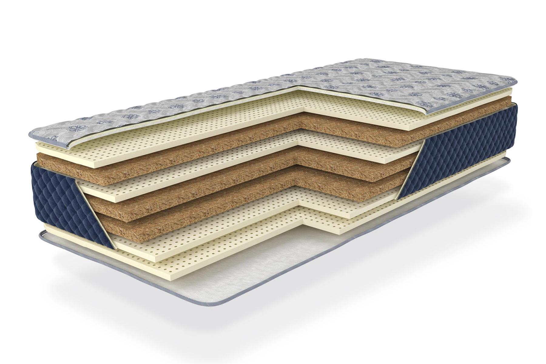 Основа виробу – шари кокосової койри, що надають матрацу необхідну жорсткість, міцність і відмінну повітропроникність. Натуральний латекс, що використовується у верхніх шарах, додає пружності та м’якості, створюючи ефект обволікання та розслаблення під час відпочинку. Це поєднання забезпечує ідеальну підтримку для людей, які віддають перевагу більш жорстким, але комфортним матрацам.