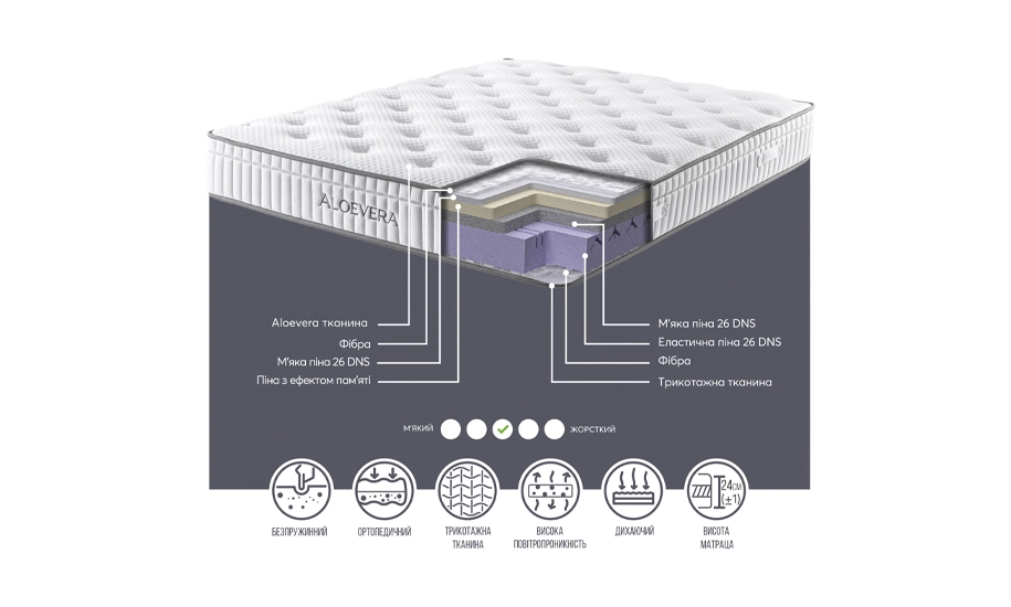 Матрац Aloevera Visco 90x200 поєднує в собі сучасні технології комфорту та натуральний догляд за тілом.
