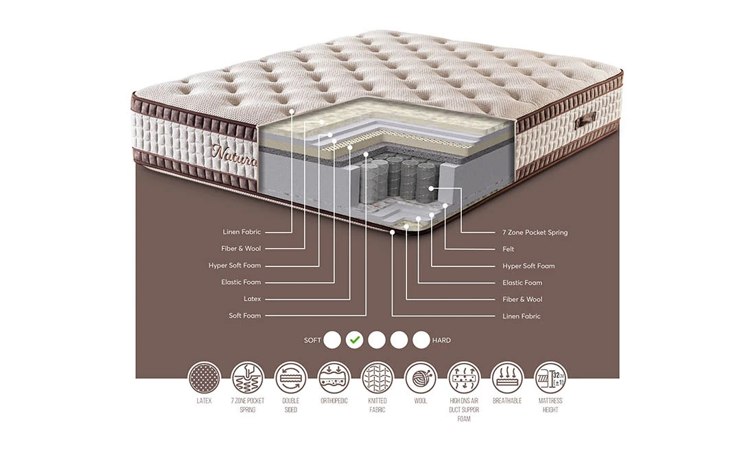 - Пружини кишенькового типу для незалежної підтримки кожної зони тіла.