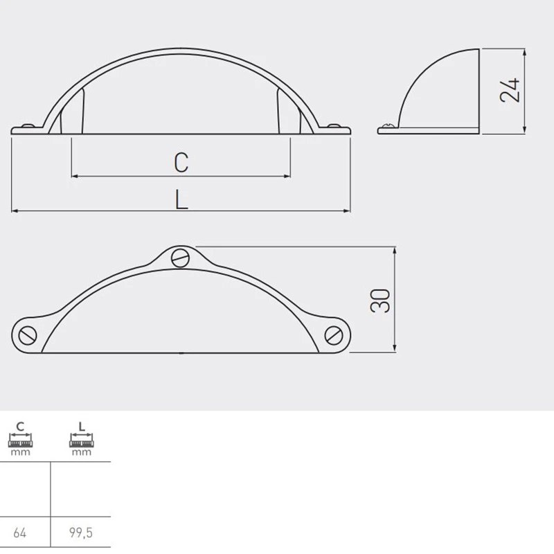 Ручки MARSALA виготовлені з якісного матеріалу, що забезпечує їм довговічність і стійкість до зносу. Їх розміри складають 64 мм відстані між точками кріплення, загальну довжину 99,5 мм, ширину 30 мм і висоту 24 мм, що робить їх ідеальними для використання на сервантах, консолях, комодах, вітринах або кухонних меблях.