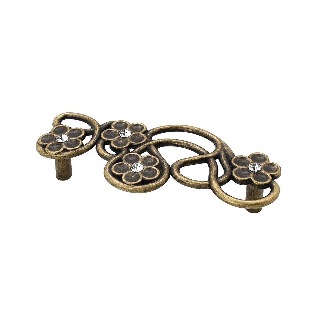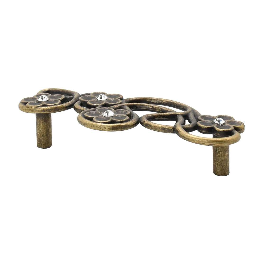 Скоба з оксидованої бронзи з кристалами має міжцентрову відстань 96 мм. Вона створює елегантний акцент і підходить для класичних меблів.