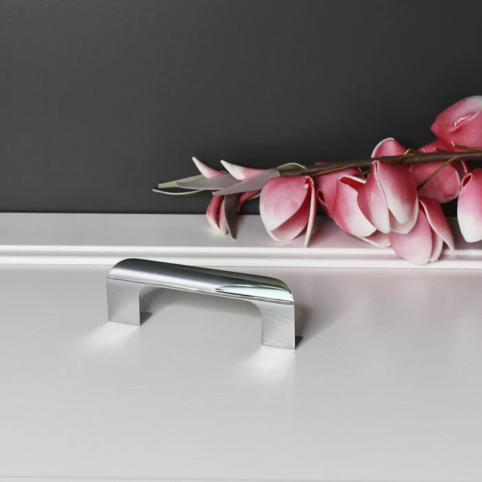 Меблева ручка-скоба з хромованим покриттям має міжцентрову відстань 96 мм. Вона поєднує сучасний вигляд та довговічність.