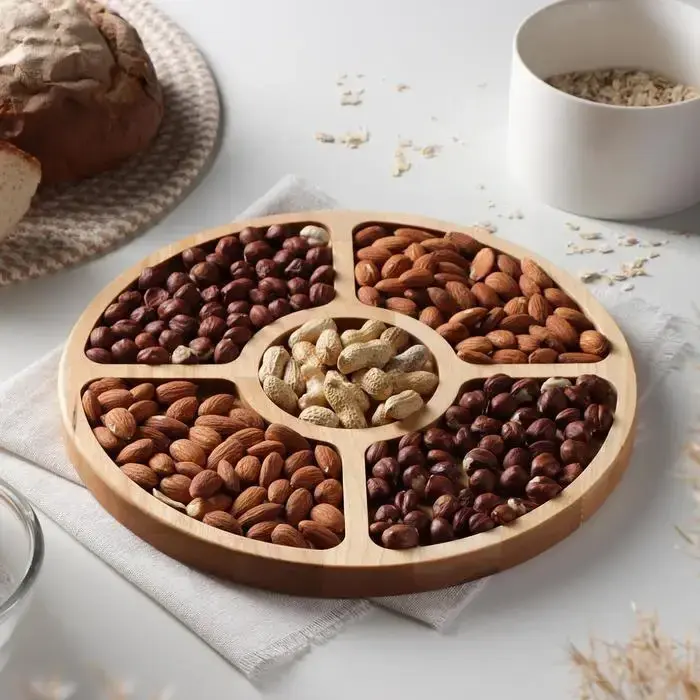 Менажниця з дерева відрізняється своєю універсальністю: її можна використовувати для подачі закусок, фруктів, десертів, а також для організації різних страв під час святкових подій, сімейних обідів або вечірок. Вона має кілька відділень, що дозволяє акуратно розташовувати продукти, зберігаючи їх свіжими та легко доступними для гостей.
