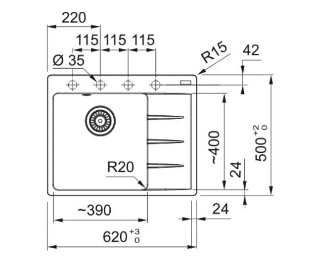 Мийка кухонна Franke Centro, фраграніт, прямокутник, з крилом, 620х500х200мм, чаша - 1, врізна, CNG