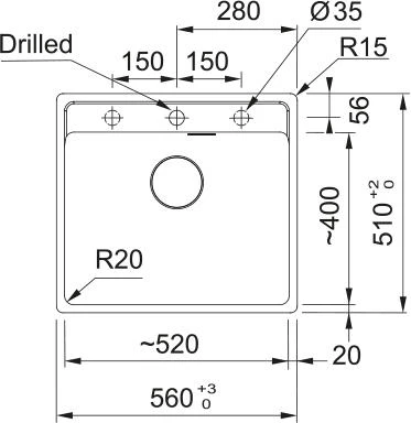 Мийка кухонна Franke Maris, фраграніт, прямокутник, без крила, 560х510х200мм, чаша - 1, врізна, MRG