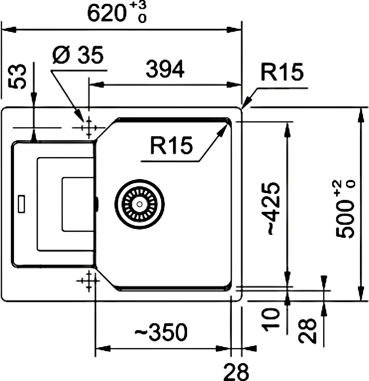 Мийка кухонна Franke Urban, фраграніт, прямокутник, з крилом, 620х500х220мм, чаша - 1, врізна, оборо