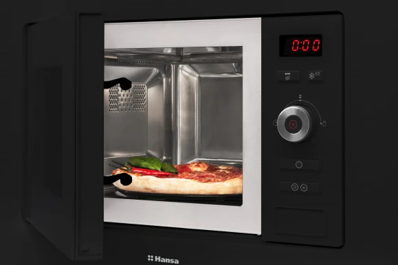 Мікрохвильова піч Hansa вбудовувана, 20л, електр.управл., 800Вт, гриль, дисплей, відкр.кнопкою, чорн