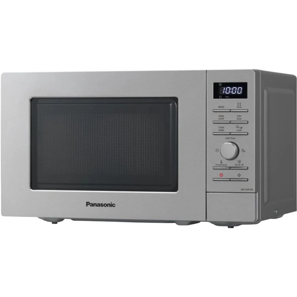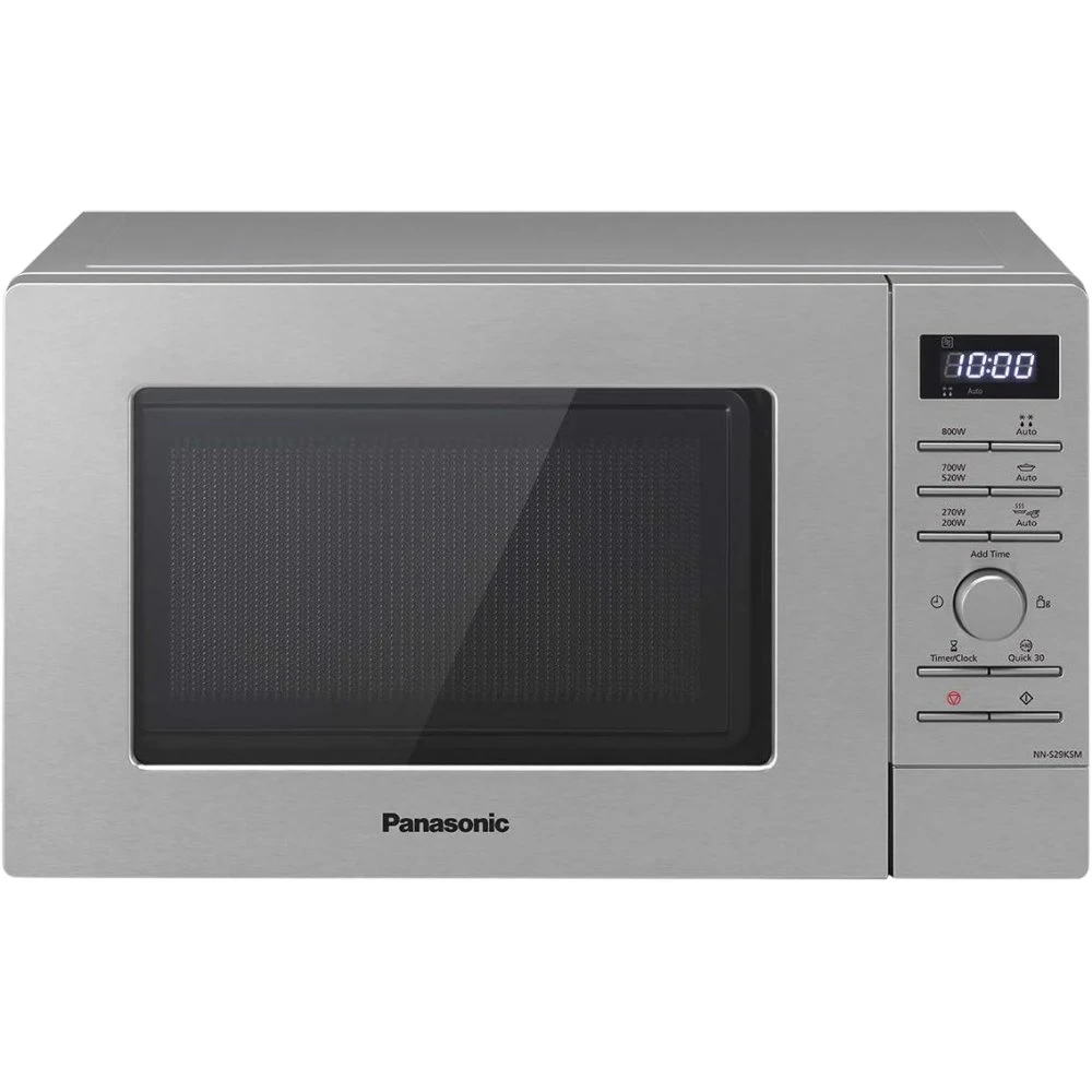 Мікрохвильова піч Panasonic NN-S29KSMZUE — модель SOLO об’ємом 20 л з електронним керуванням і потужністю 800 Вт. Є дисплей, таймер, годинник, блокування від дітей та відкриття дверцят кнопкою. Передбачено 9 автоматичних програм, а також Quick Start і Time Plus для швидкого керування часом. Передня панель виконана з нержавіючої сталі, колір корпусу сірий.