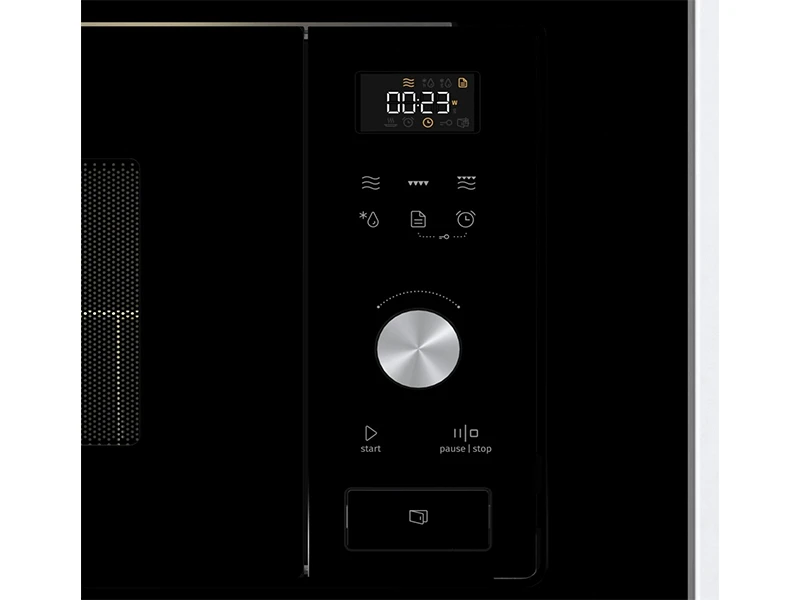 Елегантний і вдало скомпонований РК-дисплей надає можливість стежити за процесом приготування або нагрівання в мікрохвильовій печі. Таймер зворотного відліку надає актуальну інформацію про те, скільки триватиме процес приготування та які функції використовуються.