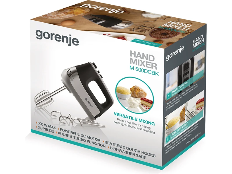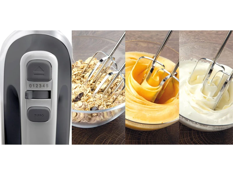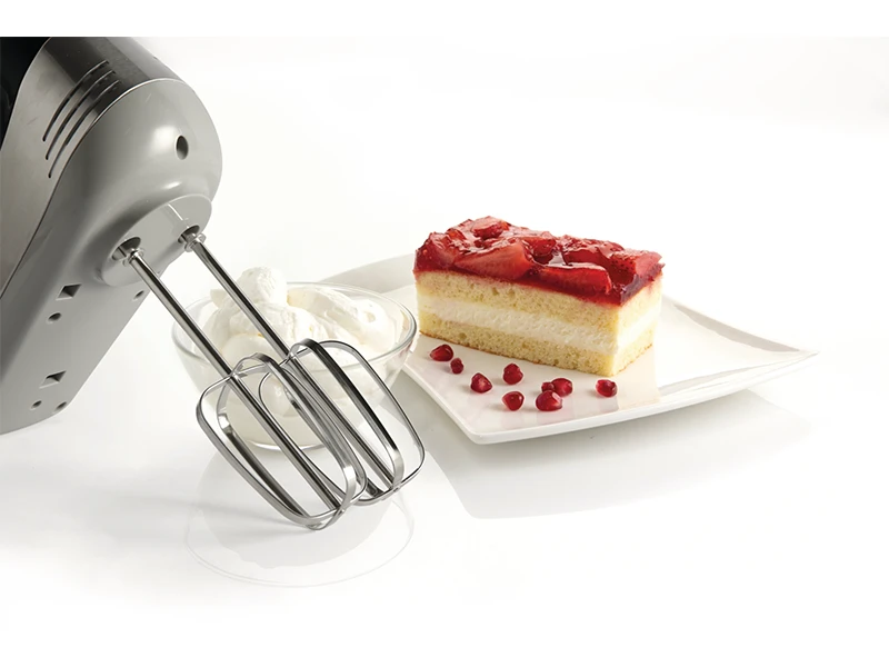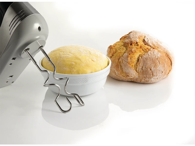 У комплекті з ручним міксером постачаються спеціально розроблені копистки та гачки для тіста з нержавіючої сталі. Ідеально підходить для приготування печива, хліба або збитих вершків.