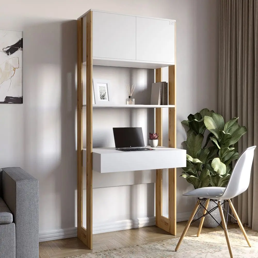 Вы мечтаете об удобном месте для работы или обучения? Стеллаж LION Нобу оборудован простором для стола, что позволяет создать комфортную рабочую зону. Полочки обеспечивают достаточно места для хранения книг, документов и декоративных элементов, что поможет вам поддерживать порядок и организацию.