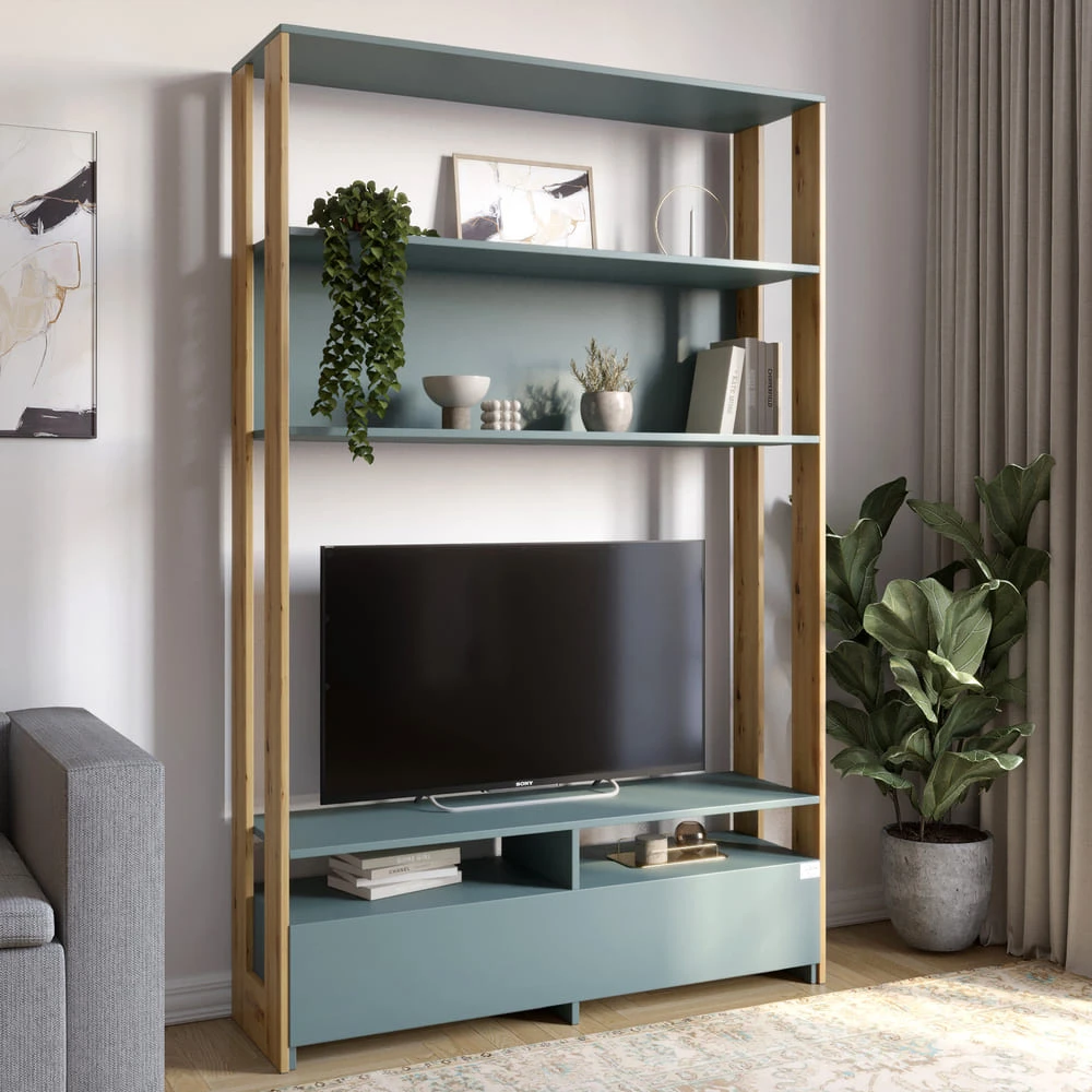 Благодаря своим продуманным формам и размерам, стеллаж обеспечивает достаточно места для хранения всех ваших любимых предметов. Полочки и тумба под ТВ позволяют организовать пространство максимально эффективно, предоставляя вам возможность удобно разместить телевизор и другие медиаустройства. Забудьте о беспорядке – с этим стеллажем ваши вещи всегда будут на своих местах.