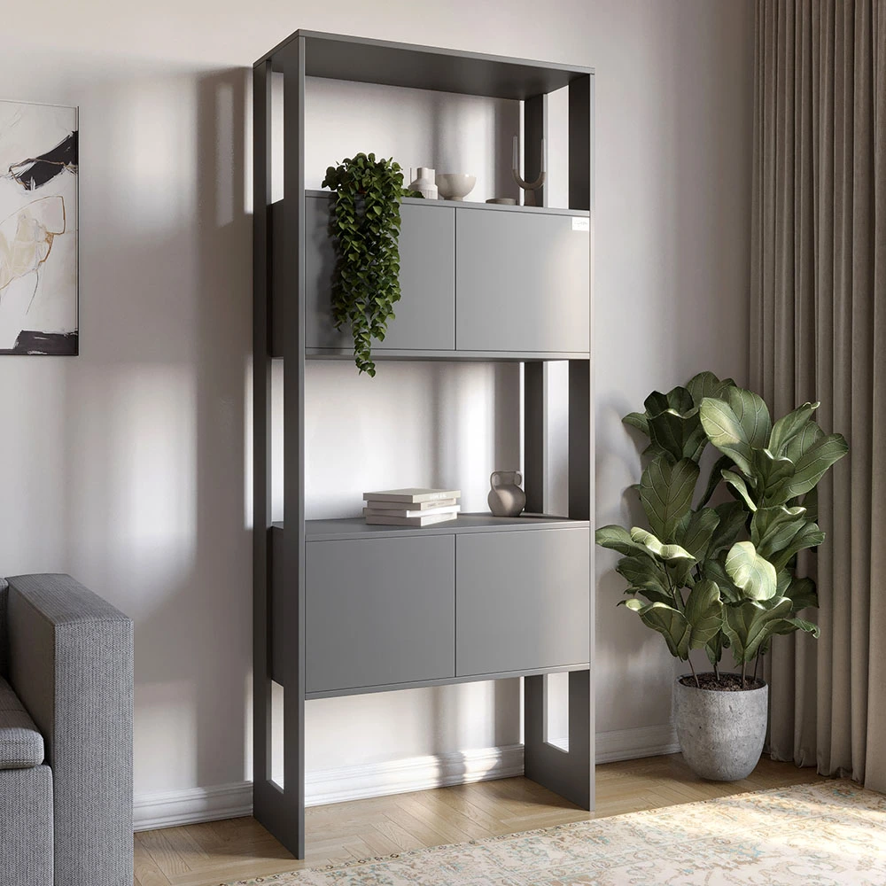 Не упустите возможность подчеркнуть свой стиль с помощью этого эстетического решения. Стеллаж LION Нобу Антрацит отлично вписывается в любой интерьер, от современного до классического, и станет акцентом вашей комнаты. Ваша коллекция книг, декоративных элементов или других вещей найдет свое место на этих элегантных полках.