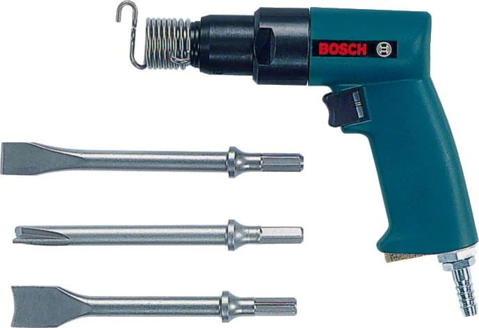 Bosch Professional пневматичний відбійний молоток (1 кг, 2 Дж, 1600 уд/хв) — компактний і потужний інструмент для демонтажу плитки, штукатурки, цегли, бетону та металевих конструкцій. Працює від стисненого повітря (8,5 л/с при 6,3 бар), оснащений патроном SW 10 мм під стандартні зубила з круглим хвостовиком Ø 10,2 мм. Міцний ударостійкий пластиковий корпус ізольований від холоду та вологи, відведення відпрацьованого повітря через рукоятку. У комплекті набір оснастки та кейс — ідеальний вибір для професійного та напівпрофесійного демонтажу в обмеженому просторі.